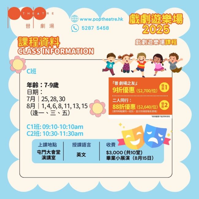 POP Theatre releases multiple children’s drama every year, bringing exciting and educational stage programs to Hong Kong children. Nowsday, the education increasingly emphasizes the development of children’s diverse talents, encouraging STEM to cultivate students’ scientific thinking, and also hoping that children can develop in performing arts, art, and sports. In addition, we will also provide children’s theater troupe courses to allow children to experience the fun of drama firsthand.